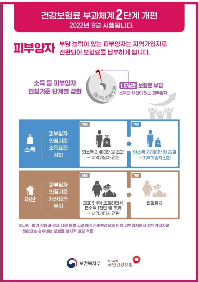 2022년 9월 개편 2단계 적용 피부양자 소득, 재산요건(예정)