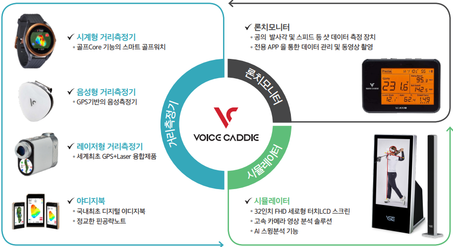 골프와 IT기술의 융합으로 매년 2-30%이상 꾸준히 성장하고 시계형 거리측정기의 경우 국내 1위로서 시장점유율을 보유하고 있습니다. 골프시장의 성장성과 높은 국내 시장점유율을 토대로 북미 중심의 글로벌 시장 진출, 신제품 출시 및 신사업 성장에 대해 기대해 볼 수 있습니다.