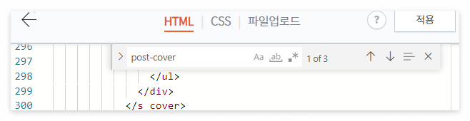 ④검색창에 post-cover라고 입력 후 ↓ 화살표를 눌러 세 번째 쓰인 곳으로 이동