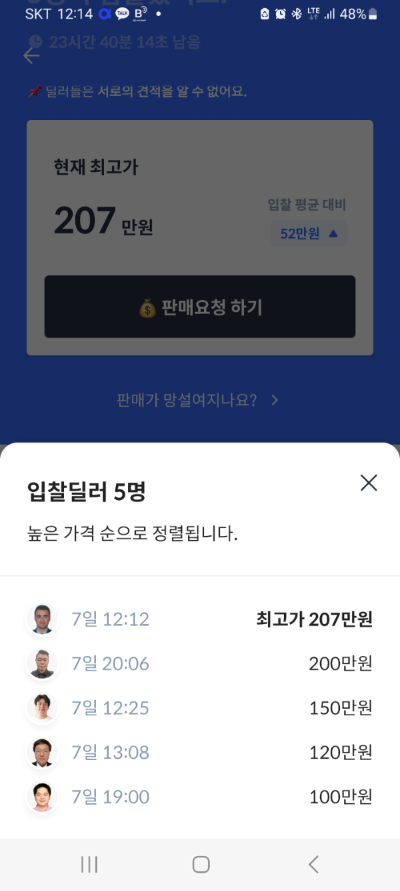 맘에 드는 가격에 3일 내 판매요청을 하면 되고 판매취소도 가능합니다.