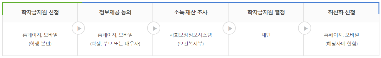 | 신청방법 | 재단 누리집(https://www.kosaf.go.kr)과 ‘한국장학재단’ 이동통신 앱을 통해 국가장학금 Ⅰ·Ⅱ유형 및 다자녀 국가장학금 통합 신청 |