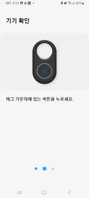 삼성스마트폰을 사용하고 있다면 스마트태그 가운데에 있는 버튼을 누르라는 문구가 뜰 것입니다.