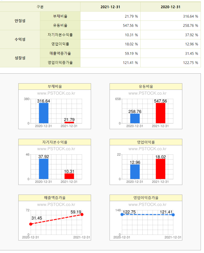 재무실적에서 영업이익이 증가하고 있는 모습을 보여주고 부채비율도 줄고 있습니다.