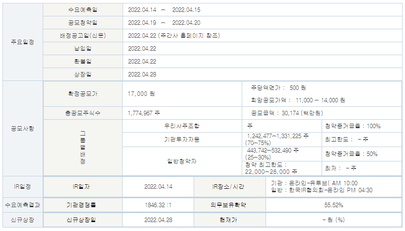 수요예측결과가 공모경쟁률이 높을 것으로 보입니다.