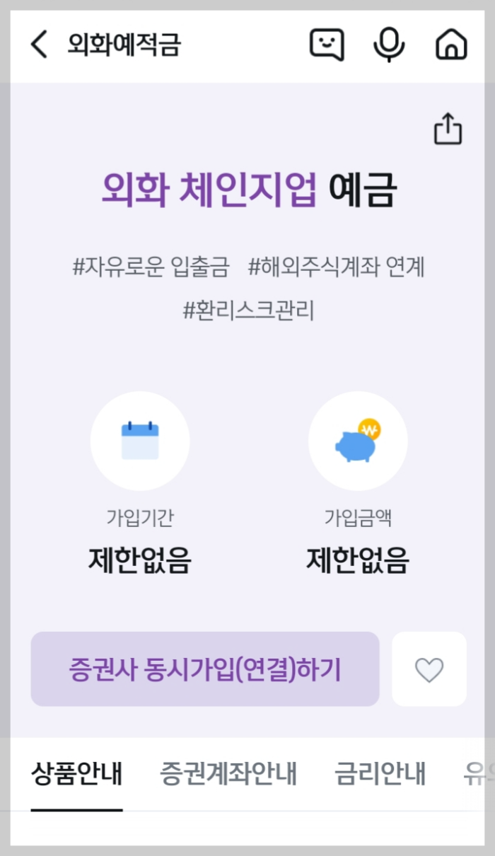 신한은행 쏠에서 상품몰 외화예적금으로 들어가면 '외화 체인지업 예금'이 있습니다.